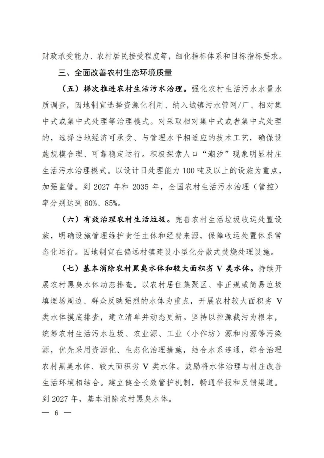 全面改善農(nóng)村生態(tài)環(huán)境質(zhì)量。梯次推進(jìn)農(nóng)村生活污水治理,有效治理農(nóng)村生活垃圾,基本消除農(nóng)村黑臭水體和較大面積劣Ⅴ類水體。協(xié)同推進(jìn)畜禽養(yǎng)殖氨等臭氣治理,對(duì)群眾反映強(qiáng)烈的惡臭異味等擾民問題加強(qiáng)排查整治。綜合治理鄉(xiāng)村水土流失,大力推進(jìn)生態(tài)清潔小流域建設(shè)。長(zhǎng)效保護(hù)鄉(xiāng)村自然生態(tài)。