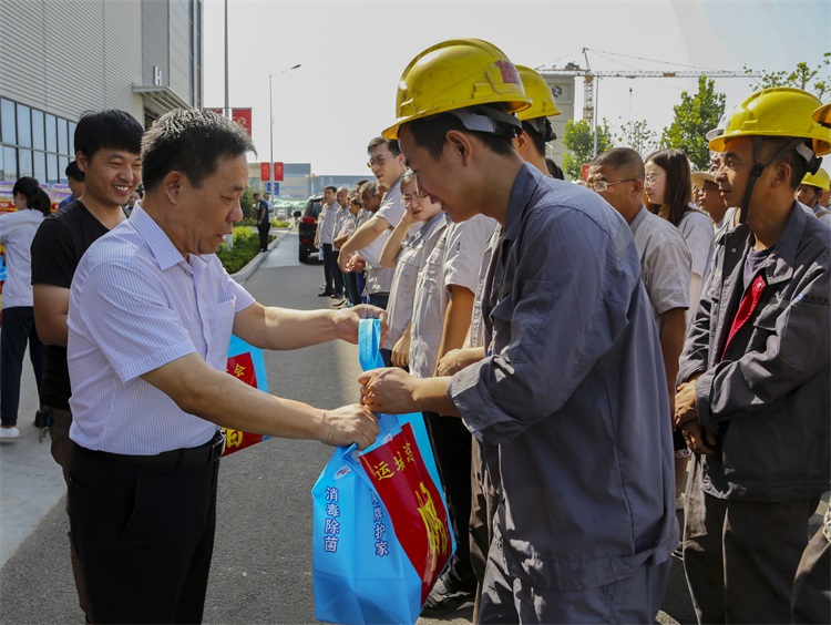 8月10日上午,運(yùn)城市總工會(huì)黨組書記、常務(wù)副主席李志民,市總工會(huì)黨組成員、副主席秦全發(fā)帶領(lǐng)工作人員來到華兆東南(運(yùn)城)綠色建筑集成有限公司裝配式建筑產(chǎn)業(yè)基地一線,開展“情系職工、清涼一夏”慰問活動(dòng),為炎炎夏日里仍堅(jiān)守在崗位的一線職工們送上了飲料、罐頭、毛巾、洗發(fā)水、洗衣粉、香皂等防暑降溫物品,讓他們切身感受到了黨和政府以及工會(huì)組織的關(guān)懷和溫暖。