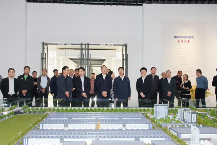 調(diào)研組一行參觀了公司展示大廳,觀看了企業(yè)宣傳片,詳細了解企業(yè)發(fā)展歷程,認真聽取了裝配式鋼結構在節(jié)能環(huán)保、建造速度、安全抗震及品質(zhì)等方面的優(yōu)勢介紹,詳細詢問了裝配式建筑在我市的推廣和政策執(zhí)行情況。