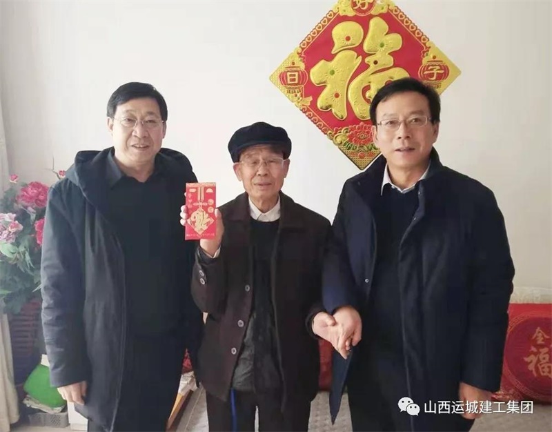 寒冬送暖,臘月傳情。在新春佳節(jié)來(lái)臨之際,運(yùn)城建工黨委班子心系離退休老黨員、老領(lǐng)導(dǎo)、老同志和困難職工,為使他們度過(guò)一個(gè)歡樂(lè)祥和的春節(jié),1月21日,受黨委書記牛正澤同志委托,公司董事長(zhǎng)王立平、黨委副書記侯占平、總經(jīng)理王哲波走訪慰問(wèn)離退休老黨員、老領(lǐng)導(dǎo)、老同志和困難職工,向他們致以新春的祝福和問(wèn)候。